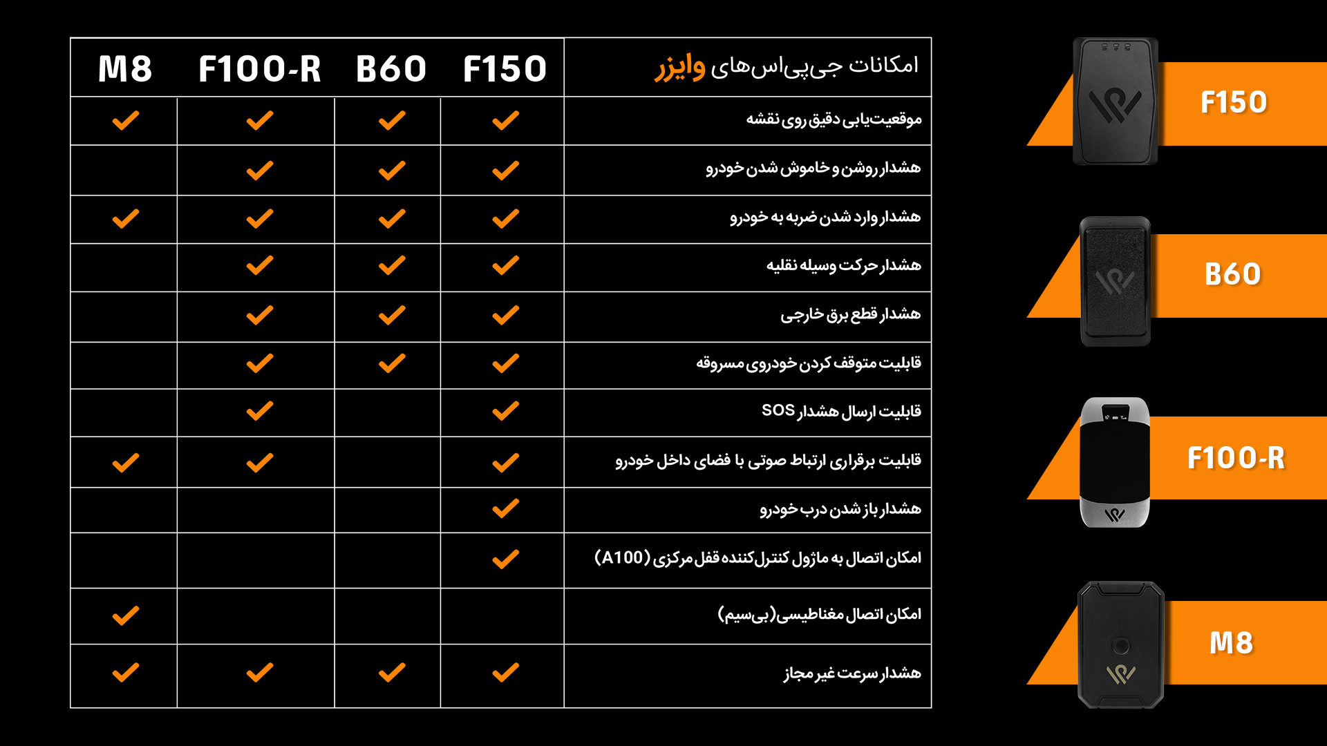 مقایسه امکانات ردیاب های خودرو شرکت وایزر با یکدیگر